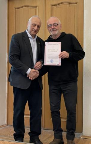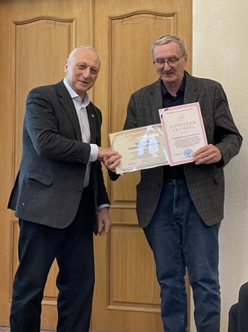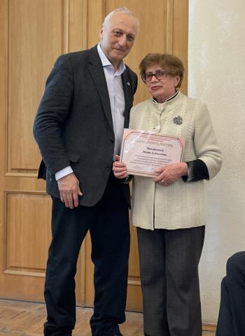 "За многолетний добросовестный труд, высокий профессионализм и общественную деятельность на благо Московского университета" Почетными грамотами ректора МГУ награждены Леонид Александрович Кузьмичев, Юрий Александрович Манкелевич, Юрий Владимирович Попов и Валерий Николаевич Толстой.